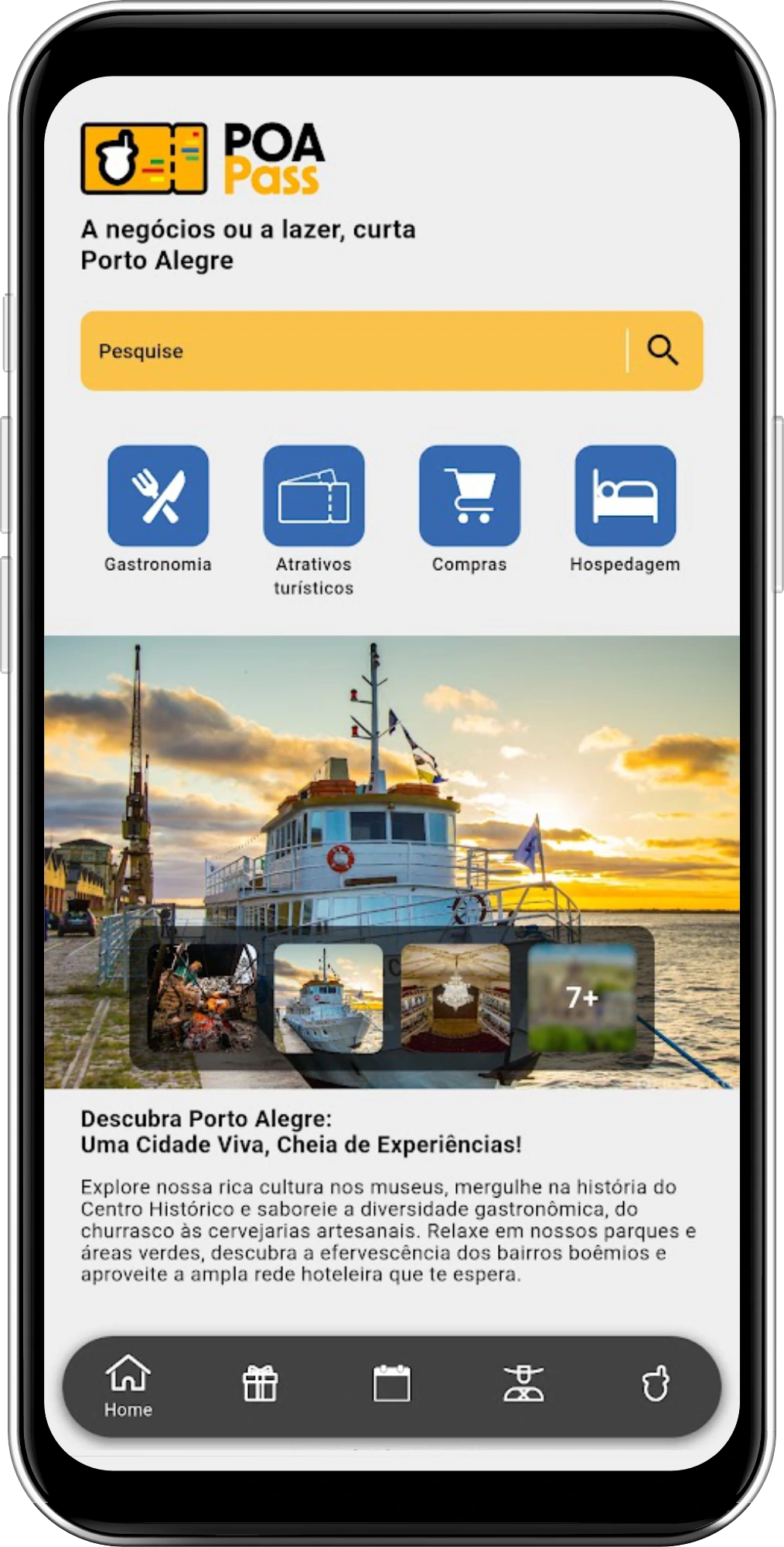 Acompanhe também a Agenda de Eventos integrada ao nosso app e descubra tudo o que está acontecendo em Porto Alegre durante sua estadia.